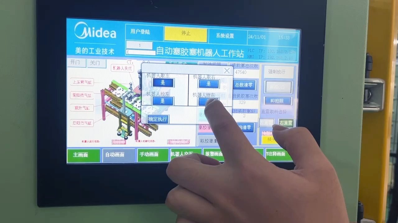 The client’s production line handles several compressor models, each requiring different rubber plug types. During production, each plug must be slightly deformed to fit securely into the copper tubes, a task traditionally performed by skilled operators. Because the tube positions varied, automating the process with traditional robotic solutions was found to be impossible.